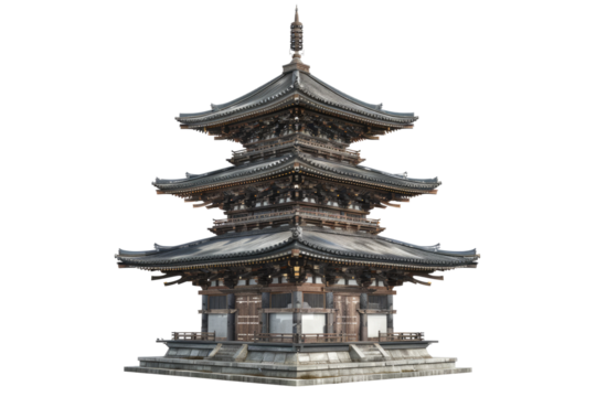 Isolated Traditional Multi-tiered Japanese Wooden Pagoda Temple Structure
