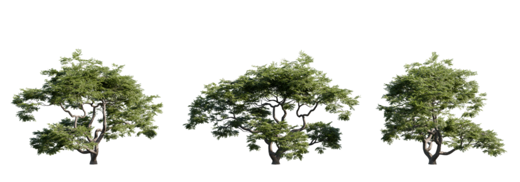 Collection of diverse deciduous trees with lush green foliage isolated on transparent background