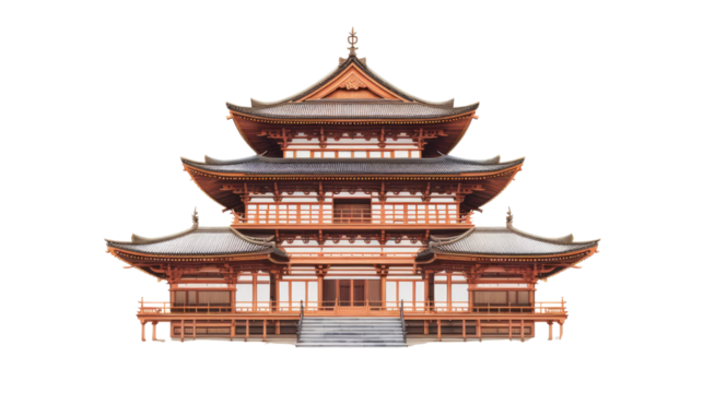 White render of a traditional japanese temple isolated on transparent background, perfect for architectural visualization or cultural projects