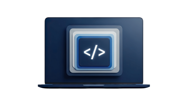 Coding Icon on Laptop Screen: Digital Technology Concept