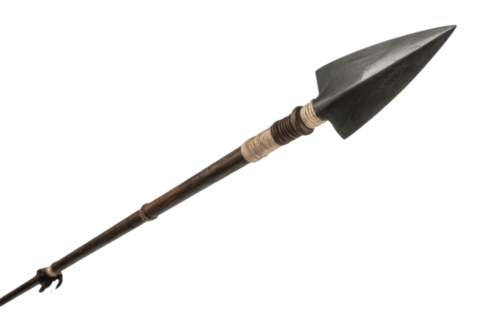 Metal spear weapon with sharp point and textured grip isolated on transparent background transparent background png