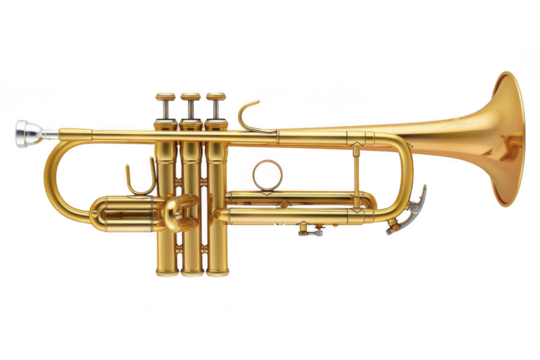 High-quality stock photo of a golden trumpet isolated on white background PNG