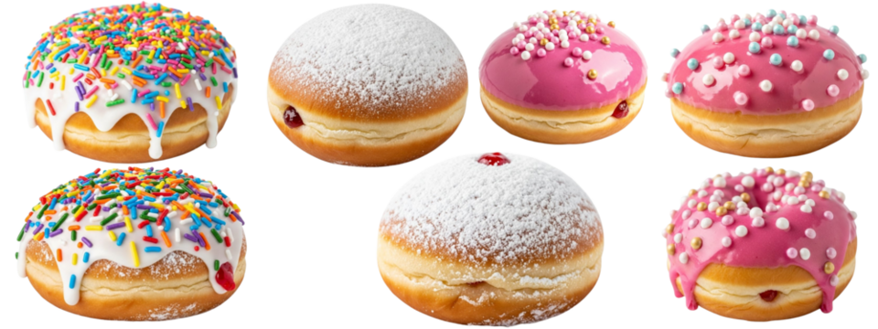 Set of Sufganiyah PNG – Delicious Jelly-Filled Donut Isolated on Transparent Background for Holiday Design
