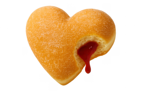 Heart shaped donut with bleeding red jelly
