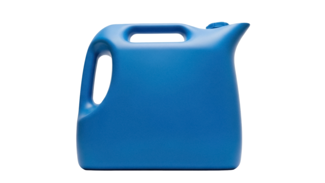 Blue plastic jerrycan isolated PNG, container for liquids on transparent background, portable fuel or water storage for camping