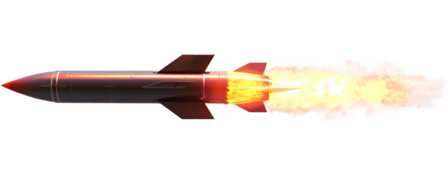 rocket missile launched isolated on transparent background ,missile with fire trail ,generative ai