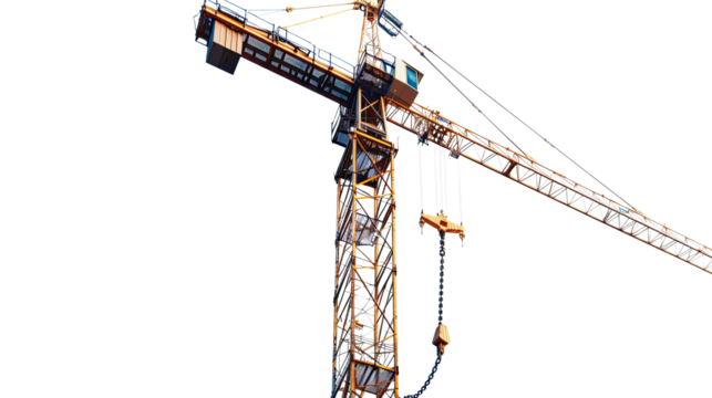 Construction crane with jib and tower mast isolated on transparent background for graphic design