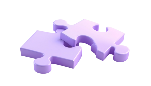 Two lavender-colored jigsaw puzzle pieces sit together. One piece is connected to the other, creating a cohesive visual concept