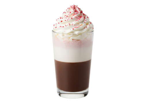 Festive Layered Hot Chocolate Drink with Whipped Cream and Red Candy Sprinkles