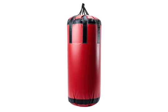 A Crimson Canvas for Athletic Endeavors: A Red Boxing Bag Awaits Its First Punch on a Clear PNG or White Background.