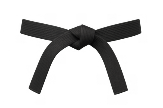 Black belt tied in knot, symbolizing master rank in martial arts like karate, judo, and taekwondo, on transparent background