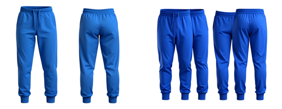Blue track pants, drawstring, isolated on transparent background view