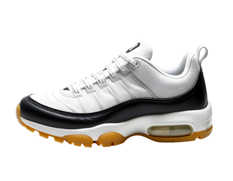Sneakers isolated on transparent background. Modern sports urban casual shoe cutout, side view