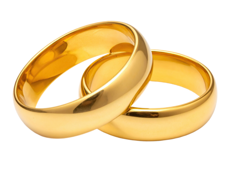 Intertwined gold wedding rings symbolizing marriage, love, commitment, and partnership with a transparent background
