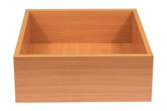 Empty wooden drawer box in light oak finish, isolated on white background. Clean and simple carpentry design ideal for storage, cabinetry, furniture making, or woodworking presentations
