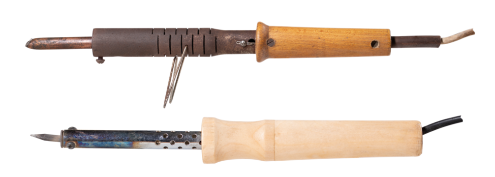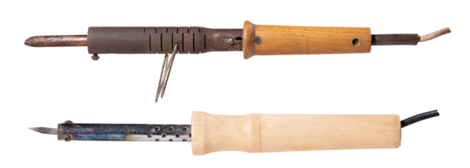 Two different soldering irons for melting tin and joining parts by soldering.