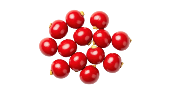 Isolated shiny red Jojoba beads pile, close-up, in the center of a frame, macro studio shot