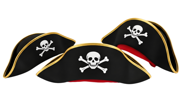 Black pirate eye patch with skull and crossbones design, isolated on transparent background. background removed