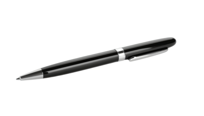 Black ballpoint pen writing instrument office stationery isolated on white background