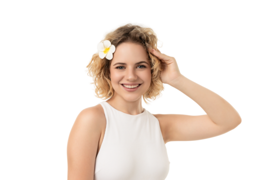 Joyful caucasian woman smiling on transparent background