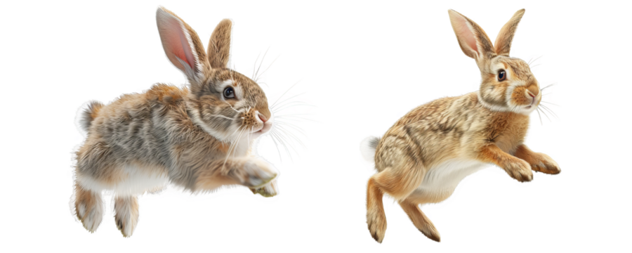 Realistic set of Gleeful Rabbit Jumping isolate on transparent background, cutout, png