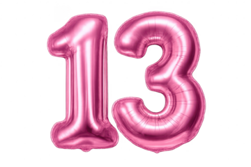 Number 13 foil balloon on transparent background for birthday party.