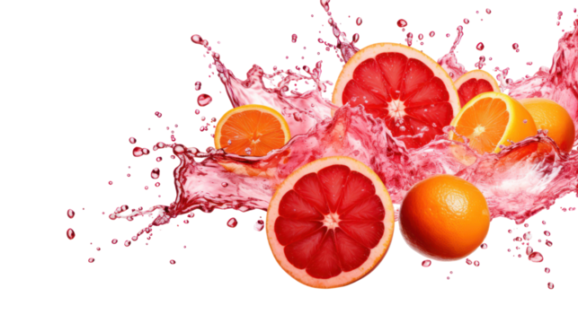 Fruit juice splash with slice - red fruit juice splash on transparent background