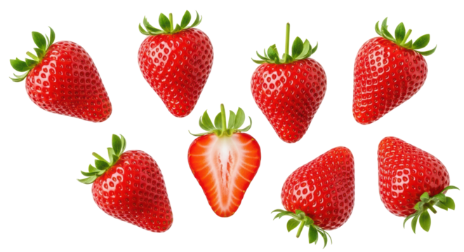 Strawberry cut out. Ripe fresh red strawberry isolated on white background. With clipping path. Summer delicious sweet berry organic fruit, food, diet, vitamins, creative layout. Mockup