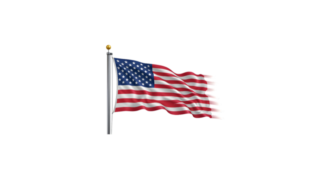 Waving american flag on pole transparent background
