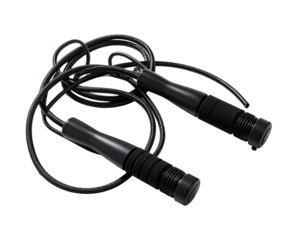 Red jump rope with blue handles coiled on a black background skipping exercise, Isolated On Png Transparent Background