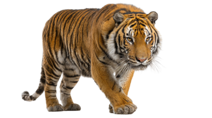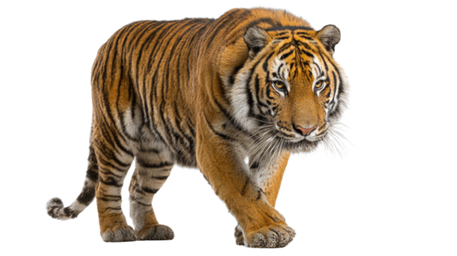 Majestic Bengal Tiger Walking – Isolated on Transparent Background for Wildlife and Nature Design