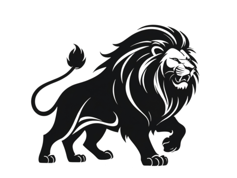 Majestic lion portrait with dramatic mane on transparent background