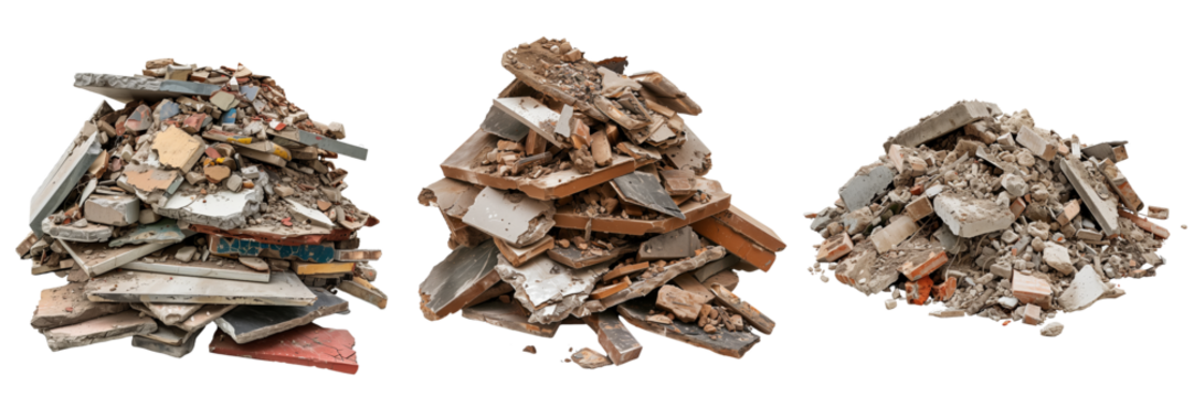 collection of pile of construction debris isolated on transparent background