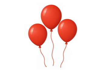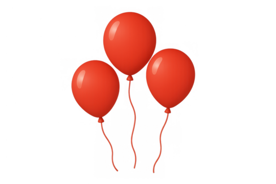 Three red balloons floating in the air, bringing happiness, fun, and a festive atmosphere for various celebrations on transparent background