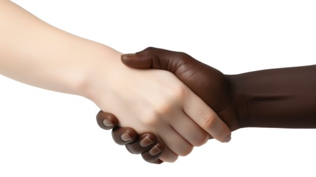 Collage of men and woman activist protesting rising their arms over white transparent background