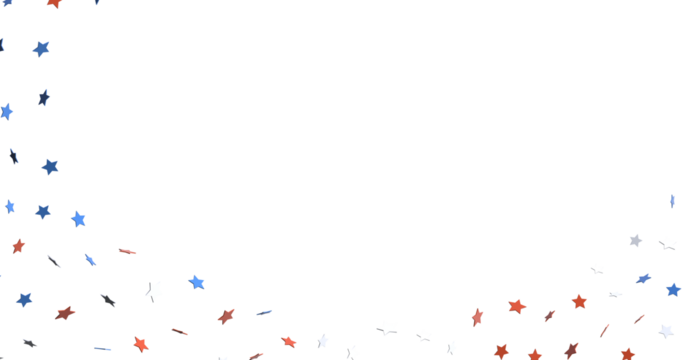 festive pattern with flying, falling red, blue, white stars in colors of the United States' flag