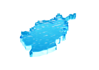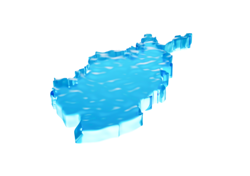 Deep Ocean Blue Water Afghanistan Map Gelatinous Smooth Surface 3D Illustration