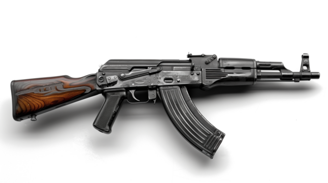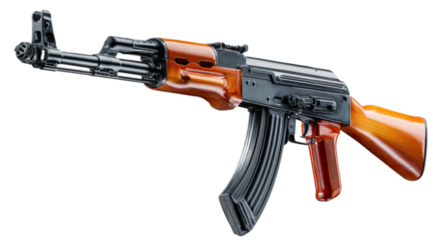 AK-47 Assault Rifle on Transparent Background – Iconic Firearm Design for Military, Tactical, and Security Applications. Perfect for Combat Scenes, Gaming Projects, Educational Materials and Realistic