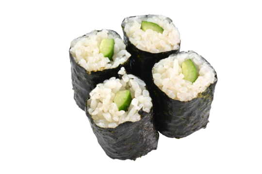 Kappa maki sushi roll with cucumber and tamagoyaki on transparent background