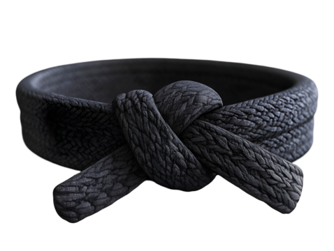 Black belt representing expertise, master rank, and achievement in martial arts like karate or judo, tied and ready for action