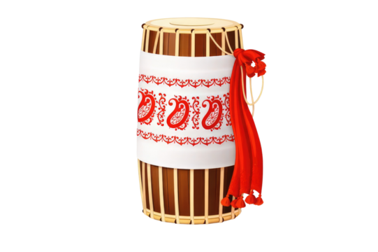 Happy magh bihu traditional drum adorned with red ribbon and intricate designs celebrating cultural heritage no background
