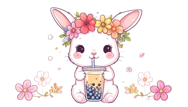 Kawaii boba cup with pastel pink cartoon dog ice cream
