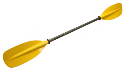 Yellow kayak paddle with black shaft and handle isolated on a transparent background yellow paddle handle