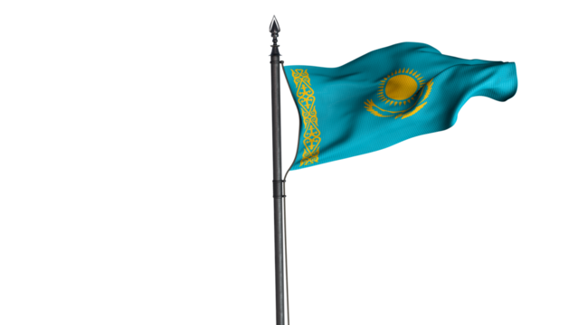 Flag of kazakhstan with no background, transparent png, flag on a flag pole waving in the wind, asian country, national symbol of kazakhstan, picture of a flag