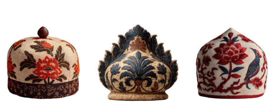Smiling senior man wearing traditional kazakh clothing and hat on transparent background