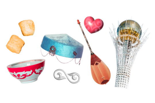 Kazakhstan - tradition and innovation, Astana sights and the life of nomads, vector drawing