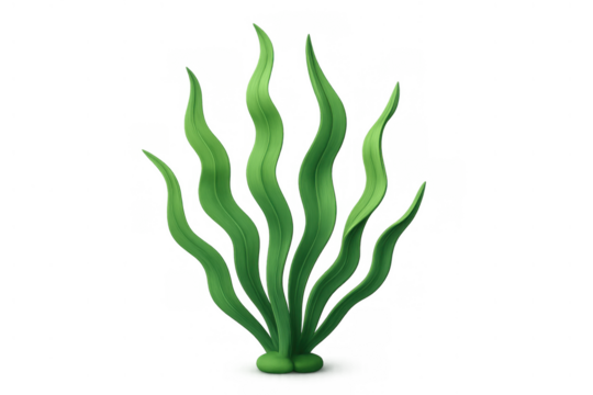 Green underwater plant, a vibrant seaweed clump, growing from the ground. This marine algae element has a transparent background
