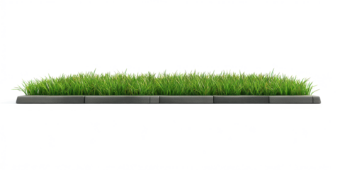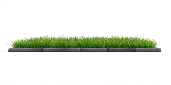 Green grass growing next to concrete curb and asphalt pavement, isolated on transparent background