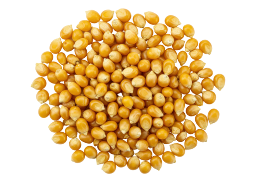 Isolated pile of dried yellow corn kernels ready for popping, viewed from directly above