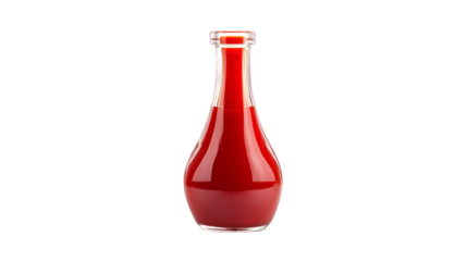 Vibrant red plastic ketchup bottle standing empty, showcasing sleek packaging with clean transparent backdrop